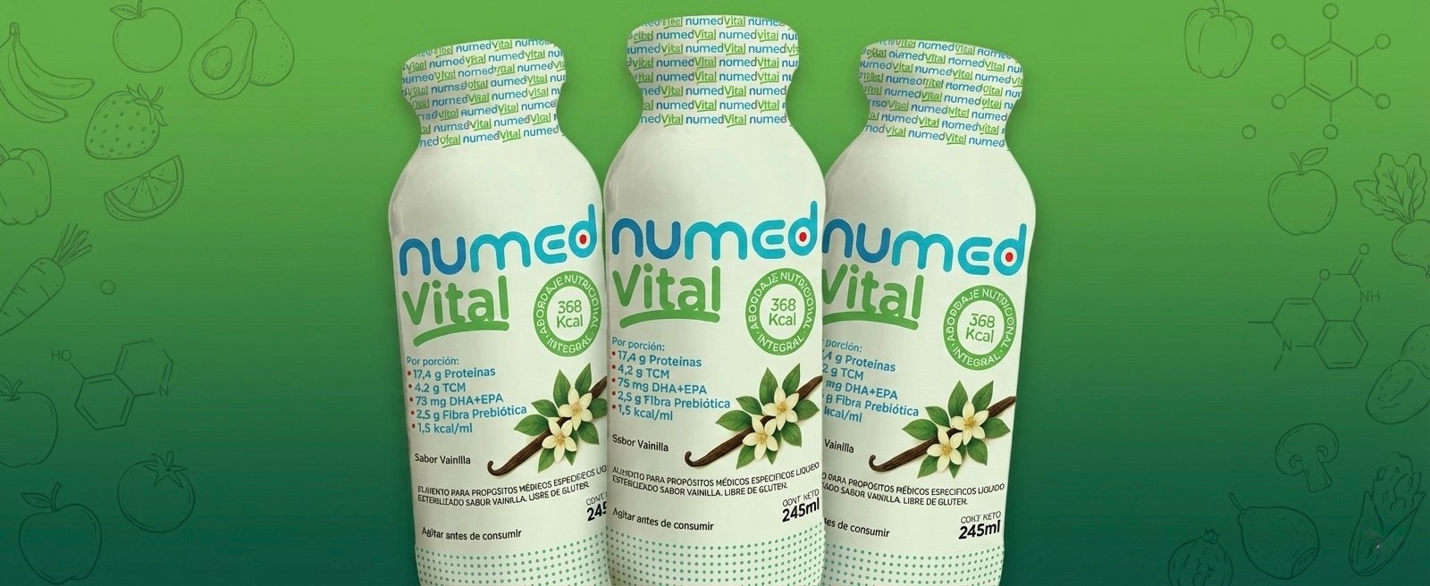 NUMED VITAL, suplemento nutricional, presenta un aporte moderadamente bajo de hidratos de carbono, con enriquecimiento de proteínas del suero, nutrientes de conocida capacidad antioxidante, ácidos grasos que promueven la modulación de la respuesta inflamatoria, e inulina como fibra dietaria. Estas condiciones son su fortaleza principal.